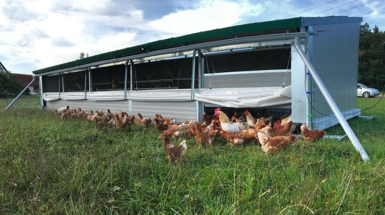 Der Transport zum Schlachten ist sehr kurz. Die Hähnchen werden sogar direkt am Hof in einem Geflügelschlachtmobil geschlachtet.